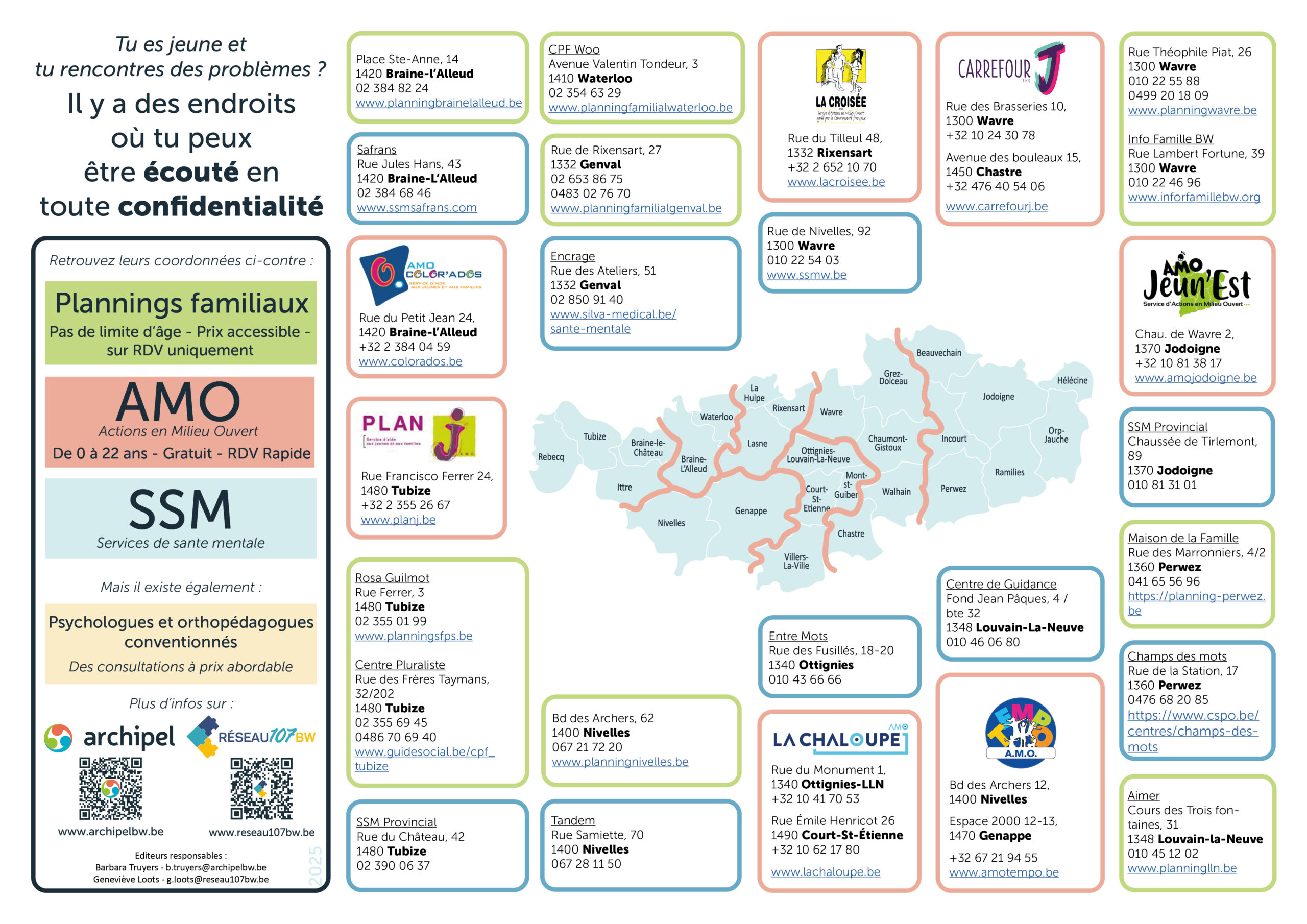 Dans le cadre de la crise sanitaire et face au mal-être des jeunes, le réseau archipel et le Réseau 107 BW ont collaboré dans l’élaboration d’une carte signalant les AMO, les plannings familiaux et les services de santé mentale.
